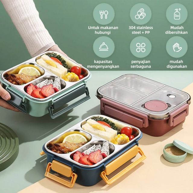 Kotak Bekal Stainless 850ml | Kotak Makan Stainless 3 Sekat Anti Tumpah Food Grade / Lunch Box Kotak Makan 850ml 3 Sekat SUS 304