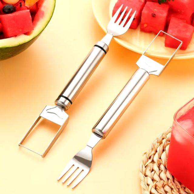 Pisau Pemotong Semangka Stainless 2in1 – Parutan Buah + Garpu Praktis untuk Watermelon Cutter
